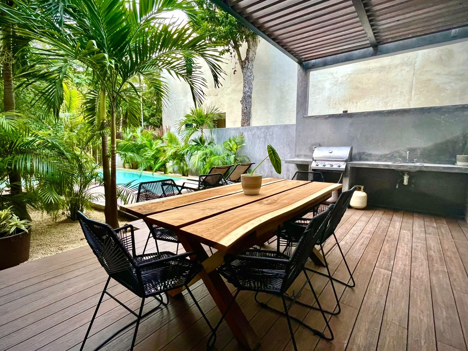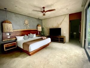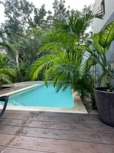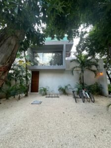 Villa Yaxkin es una residencia turn-key en Aldea Zamá, Tulum, distribuida en 2 niveles más rooftop. Ofrece 4 recámaras, 4.5 baños, cocina equipada, albercas privadas en planta baja y rooftop, además de 24 paneles solares para mayor eficiencia, dentro de una comunidad privada con seguridad 24/7 y amenidades exclusivas.